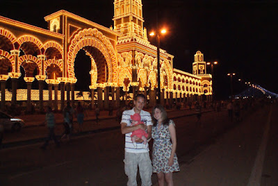 Mark, Callie and Maisie at the entrance to the Cordoba Feria